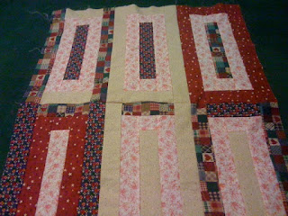 This quilt is for my niece, Maddie. She requested a red quilt and this is what I had on hand. It's still in progress (as well as #3 and #4). I have to pick out the material for the border and backing. Then it's on to #6 and #7. After that, I will concentrate on the quilting process. Then I can start on my queen size railroad fence quilt. And somewhere in there, I need to find money and time for knitting.